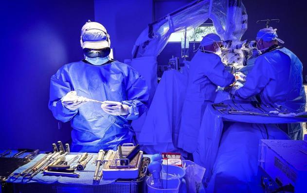 Fig -2: Surgeons utilizing AI-assisted technology during a complex procedure. AI systems enhance precision and efficiencyinhealthcare,contributingtoimproved surgical outcomesandpatientcare.