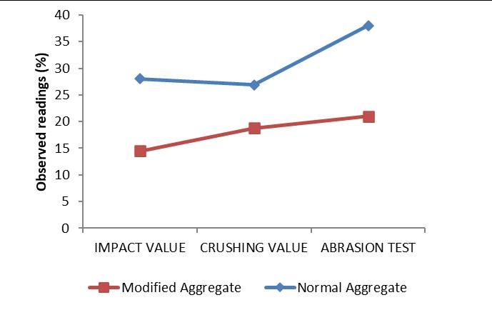 Chart1representsthecomparisonofimpact,crushingand abrasionofnormalandmodifiedaggregate.
