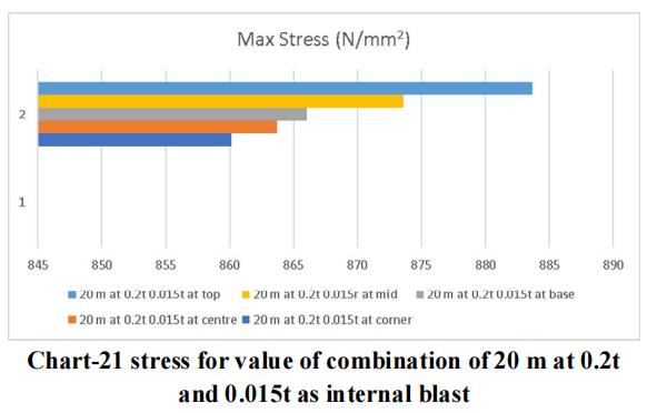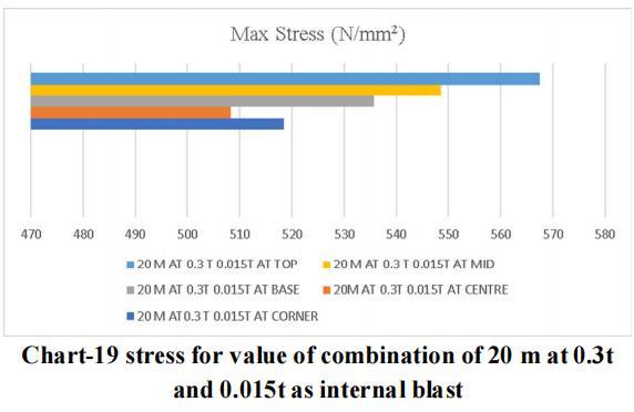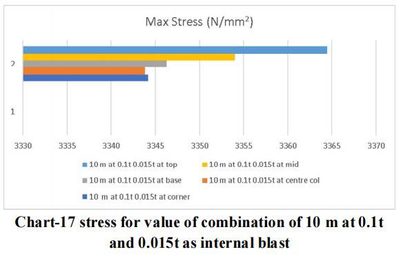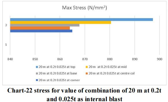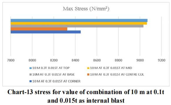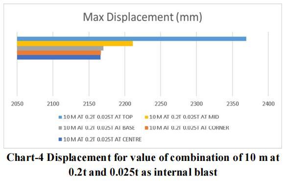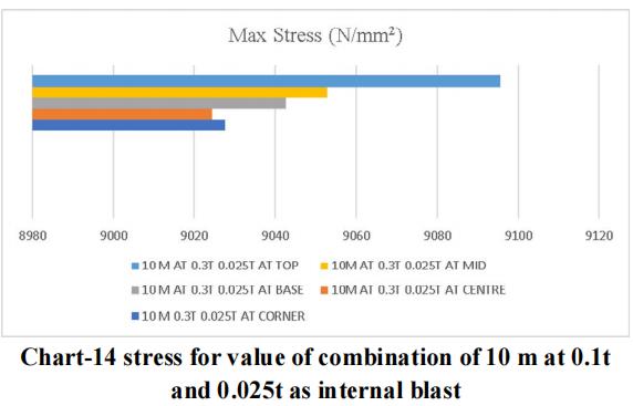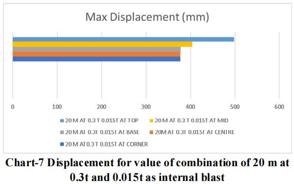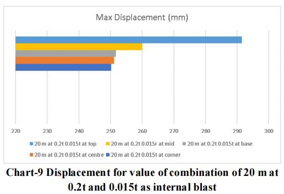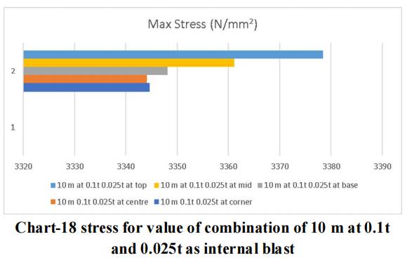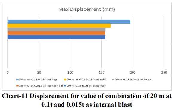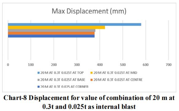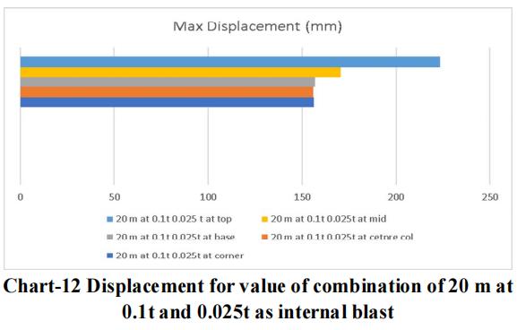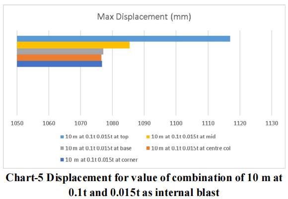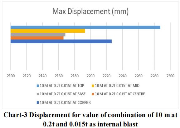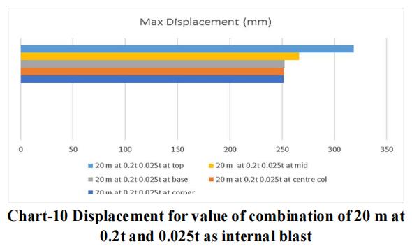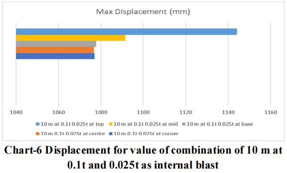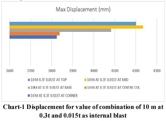 Thelargestchargeof10mwithanexternalblastof0.3tonne andaninsideblastof0.025tonneatthetoplocationyields themaximumdisplacementandstressvalue,asperthedata. Therefore,forblastresistantdesign,thesamecrosssection qualities should be included throughout all storeys. Itisadvisedthatappropriatesecuritymeasuresbetakenfor the important structure, or that appropriate measures be takentoensurethattheexplosionoccursasfarawayfrom the structure as possible. Tree plantations and other obstaclesshould be positionedinfrontofthestructure to resistblastloadandsafeguardit.