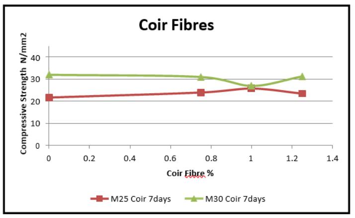 Graph 5 VariationinCompressivestrength(7days)for CoirFibres