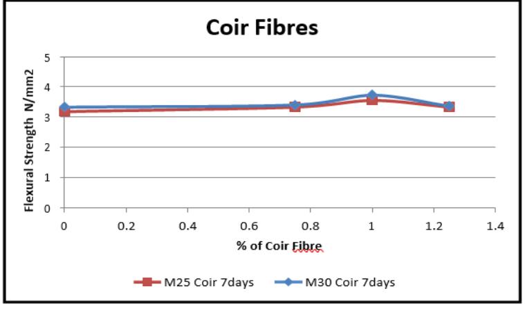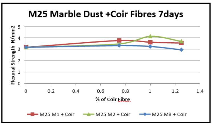 Graph-13 VariationinFlexuralstrength(7days)for MarbleDust+CoirFibres(M25)