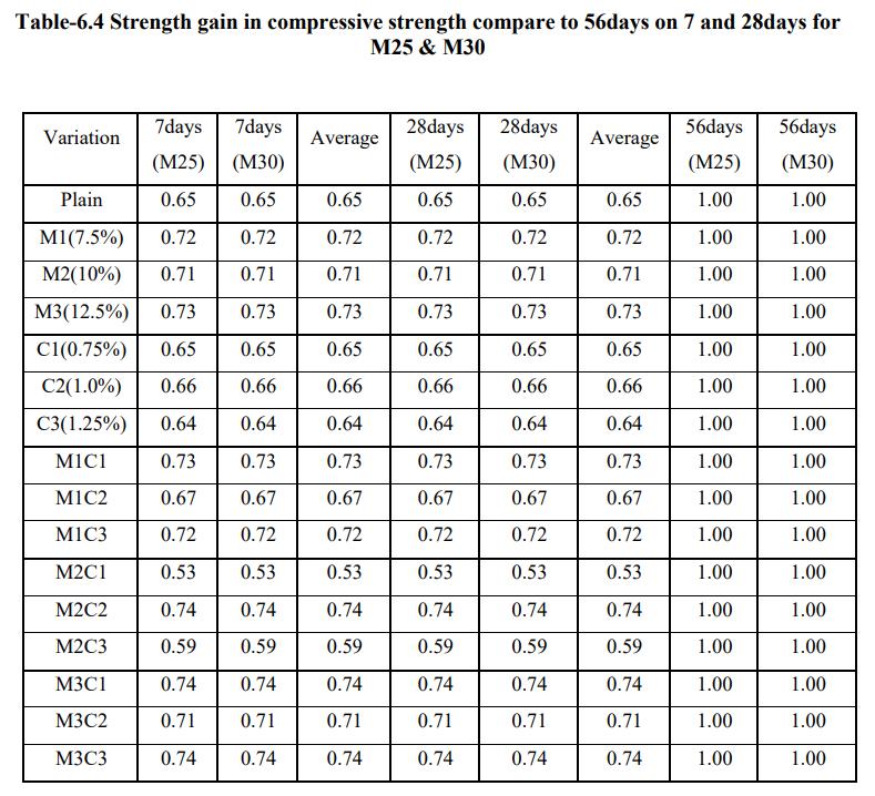 Table-6.5 Strength gain in compressive strength compare to 28days on 7 for M25 & M30:-