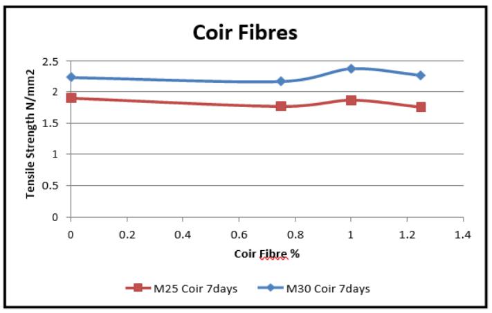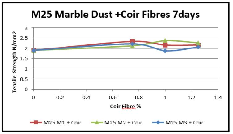 Graph-10 VariationinSplitTensilestrength(7days)for MarbleDust+CoirFibres(M25)