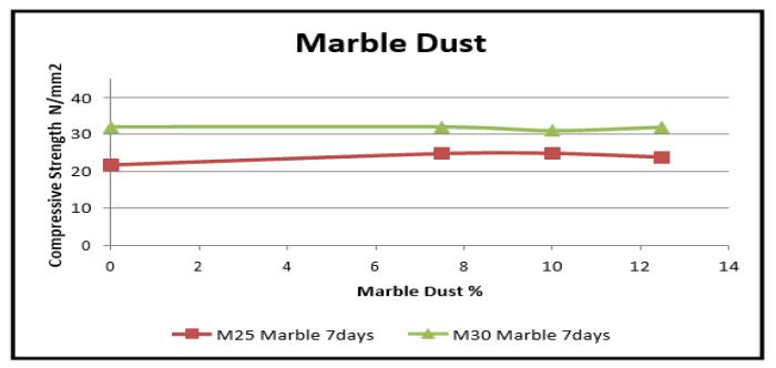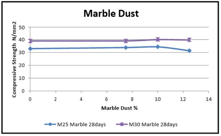 Asignificantincreaseincompressivestrengthwas notedwhenMarblepowderreplaced5%to10%of thecementbyweight.