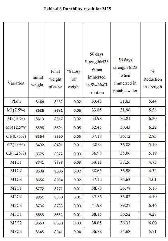 Lohani et al[4]hadcarriedoutdurabilitytestsusingMgSO4, NaClandHCl.Forthepurposeofthisdissertation5%NaCl solutionwasused.Cubeswereimmersedfor28daysinthe NaCl solution so prepared. The loss of weight and loss of strengthwerestudied.Resultsobtainedareasfollows