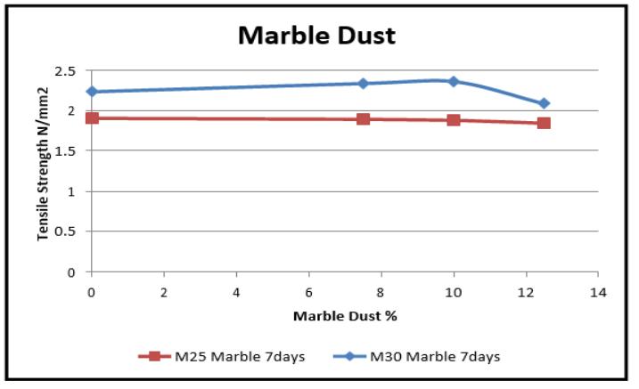Graph-6.8 VariationinSplitTensilestrength(7days)for MarbleDust