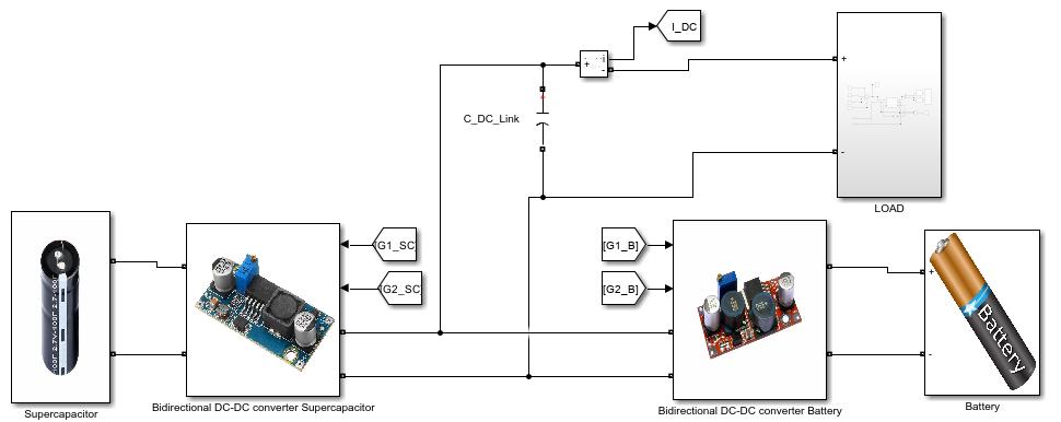 Fig (4) shows the MATLAB model of FA-HESS. As shown, the supercapacitor and battery have individual converters connectedtothem,whicharesubsequentlyconnectedtotheload