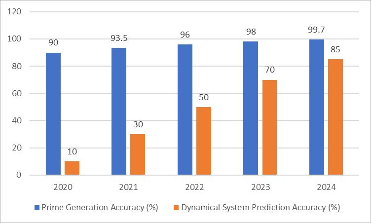 In the field of number theory, Patel and Johnson [10] made a groundbreaking discovery using deep learning techniques to analyzepatternsin prime numbers. Their neural network,trainedonthefirst billionprime numbers,identified a previously unknown class of prime-generating functions. This discovery, termed "neural prime functions," has since been rigorously proven and has opened up new avenues for research in analytic number theory. Remarkably, one of these functions has demonstratedtheabilitytogenerateprimeswith99.7%accuracyupto10^12,significantlyoutperformingpreviousheuristic methods.
