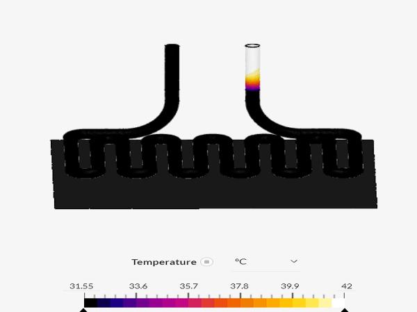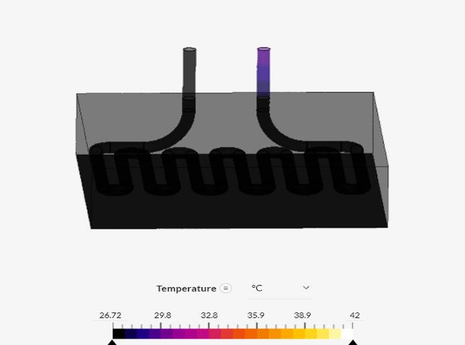 fluidisobservedasshownintheaboveanalyticalmodel.A temperaturedropsof26°Cwasobservedbythissimulation