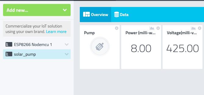 Actions should be taken based on obtained records. By observing the graph of the power generated it can be understoodnowthetimeistocleanthesolarplates.Sowe can now turn on the water pump for the cleaning of solar plates by manually clicking on the pump icon as shown in Fig–10(a)andFig–10(b).