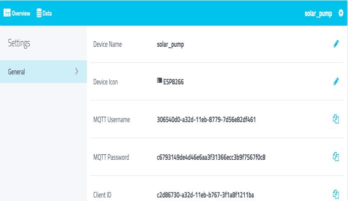 Fig.3 and Fig.4, show the message queuing telemetry transport(MQTT)Username,password,andClientID.These are needed to be placed in the Arduino code and then uploadedtoNodeMCU.WhentheNodeMCUisconnectedto theinternetthedeviceisrecognized.Sincehereweareusing two Node MCU therefore it is needed to set the 2 MQTT credentials.