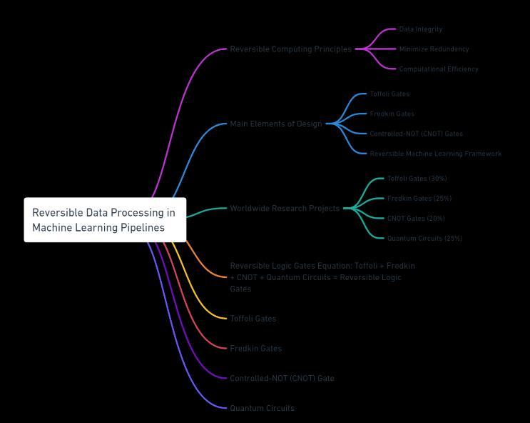 Reversiblelogicgatesandmachinelearningcomponentsarecombinedinthedesigntoenablereversibledataprocessingin machinelearningpipelines.Thisdesignmakesuseofreversiblecomputingprinciplestoguaranteedataintegrity,minimize redundancy,andimprovecomputationalefficiency.Toffoligates,Fredkingates,Controlled-NOT(CNOT)gates,andareversible machinelearningframeworkaresomeofthemainelementsofthisdesign.Researchprojectsworldwideareprogressively delvingfurtherintoreversiblecomputingapproaches.Toffoligatesaccountforabout30%oftheseprojects,Fredkingatesfor 25%,CNOTgatesfor20%,andquantumcircuitsfor25%oftheinitiatives.