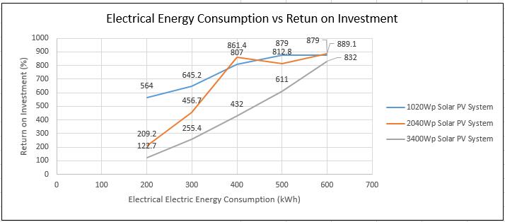 - 2: ElectricalEnergyConsumptionvsReturnon Investment(ROI)forthreesolarPVsystems