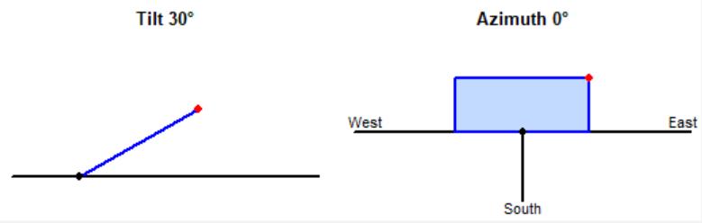 Thetiltangleofsolarpanelsissignificantforcapturingsolar radiation that reaches the panel's surface. The azimuth is defined as the angle between the south direction and the directionthepanelsface.Fig.1showstheplanetiltangleand azimuthangles(30o andAzimuth0o respectively).
