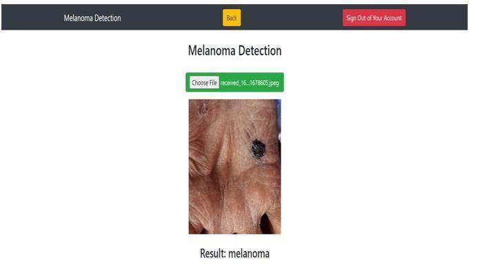 Positive Detection: Receivedoctorsuggestionsif melanomaisdetected.