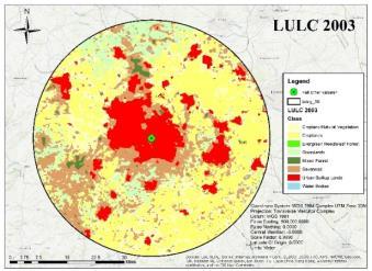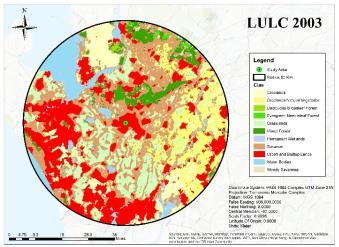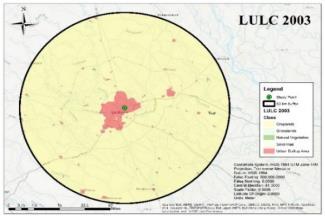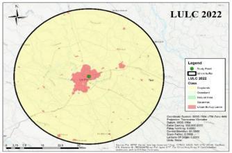 2003, 2013 and 2022 (Latest Available) is produced for Analysis in ARC GIS. An Model area of 50km Buffer is consideredasthestudyareabasedontheWatershedpoint fromKukrailCanalat26°51”35.3"N80°58”02.8"E.