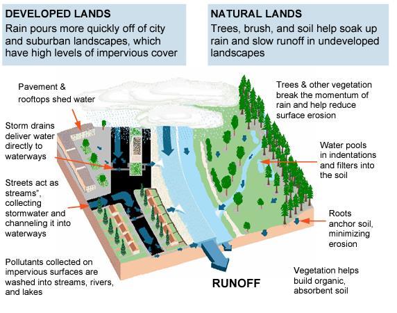 Fig -5:IllustrationoftheimpactofDevelopedLands (Urbanareas)andNaturalLands.(Source:EmilyRuby, OEHHA)