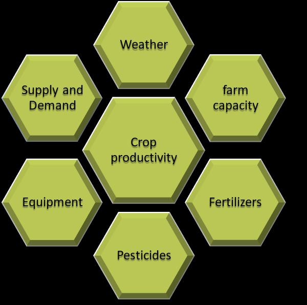 A number of different factors can cause agricultural productivitytoincreaseordecrease.Itisimportanttonote that productivity is not an absolute measure, but rather a reflection of the ratio between inputs and outputs. A field that produces twice as much of some crop as it did in a previousyearisnotnecessarilytwiceasproductive;ifthe farmerspenttwiceasmuchonthatfield,thenetchangein productivitywouldbezero.