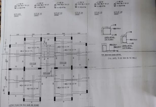 DATACOLLECTIONOFSELECTEDSTRUCTURE:Theconsent oftheauthoritiesmustbesecuredbeforeproceedingwith the following stages. To obtain full information, one G+3 building will be selected for detailed inspection and evaluation. Structural drawings, architectural plans, and constructionrecordswereobtainedinordertogetfurther insight into the original design and construction of the selected building. In addition, relevant historical data has been acquired, including construction methods, material properties, and maintenance records. To find out more informationandunderstandthebehaviorof thestructure