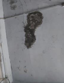 Thestructurewasbuiltin2012or2013.Theoutsideofthe structureisnotproperlyplastered.Vegetationisgrowingup close to the structure. The masonry walls have some fracturesinthem.Thereisanobviousseparationfracturein the center of the wall and column where the walls are detaching from the columns. Leakage issues are seen on higherfloors.