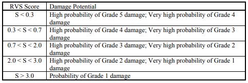 RSV method have a chart of an estimate of the potential damage based on RVS score. Therefore, it should be acknowledgedthattherealinjurywilldependonanumber offactorsnotaddressedby theRVSapproach.Asa result, this database should only be used as a reference to determineifthebuildingsrequireasimplifiedvulnerability assessment.Thesedatacanalsobeusedtoidentifywhether modifications to structures are necessary when a more comprehensiveriskassessmentmaynotbefeasible.
