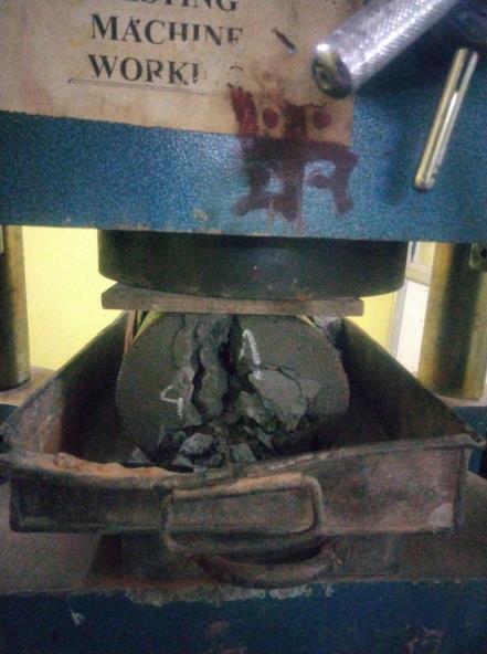 Split tensile strength test: Upon casting, the cylinder underwent testing. Using cylinders that are 150 mm in diameterand300mmhigh,in7and28days.Theformula forsplittensilestrengthis2P/πDL,wherePistheload,Dis thecylinderdiameter,andListhecylinderlength.
