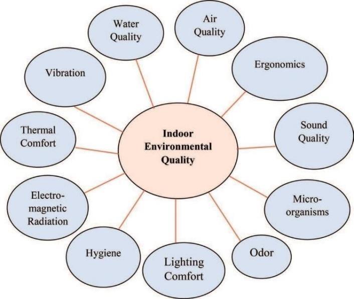 instructional facilities, one of the fundamental matters to maintain in mind is indoor environmental fine (IEQ). The domain of "indoor environmental quality" (IEQ) accommodatesmanysub-domainnamesthathaveanimpact onthewell-beingofpeoplelivingwithinastructure.Indoor environmental quality of education building is shown in [Figure-1],whichisgivenbelow.