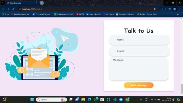 Enhanced User Experience: Implemented features such as clear questionnaire prompts and responsive designtoenhanceuserexperi-enceandaccessibility.