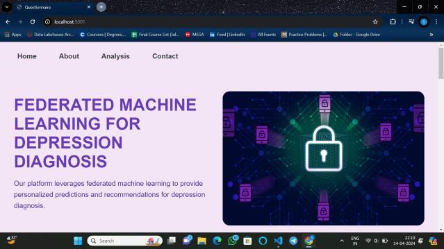 Traditional depression analysis methods strug-gle with maintaining patient confidentiality and ensuring diverse datasets. Centralized data col-lection, while thorough, poses substantial privacy risks and can deter participation, particularly in mental health contexts. Moreover, these methods often fail to capture the diverse manifestations of depression across different demographics, leading to less effective predictive models and interventions. The FML framework addresses these concerns by processing data locally on individual users’ devices,safeguardingpersonalinformationandensuring that sensitive data remains on the user’s device. This approach enhances privacy and incorporates diverse and heterogeneous data, resulting in a model that is inclusive and representative of various depression manifestations. The primary goal is to create a robust, scalable model capable of accurately predicting depression and providing insights for personalized treatment strategies. By leveraging FML, the project aims to set a new standard in mental health care analytics, offering a privacy-conscious, scalable solution that can handle diverse data sources. This approach has the potentialtorevolutionizementalhealthcare,providinga deeper under- standing of depression and paving the wayformoreeffective,personalizedcaresolutions.