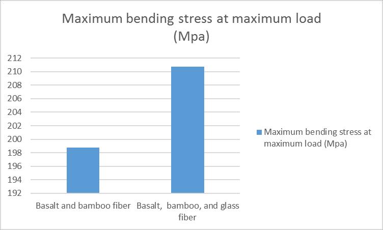 All the specimens being tested have a fixed orientation of 0°. For the specimen of (Basalt + bamboo + glass)themaximumbendingstressisrecordedat210Mpa withYoung’smodulusof10735Mpaforamaximumapplied loadof550.00KN.