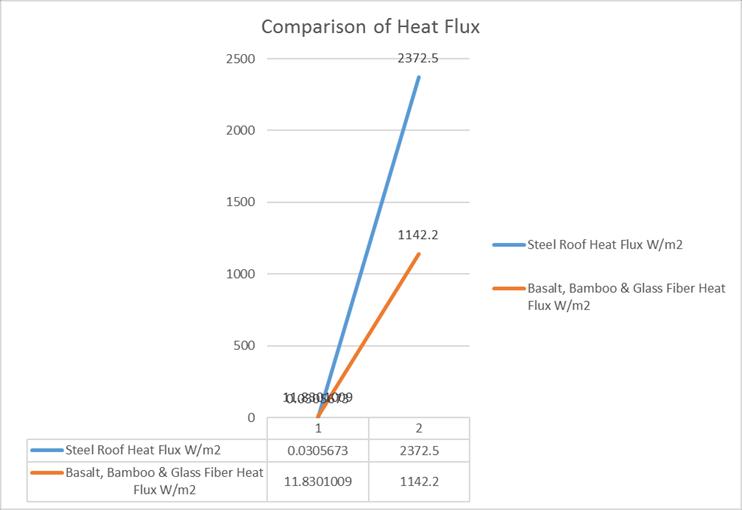 Chart-6:HeatfluxforSteelSheetandBasalt,Bambooand GlassFibers