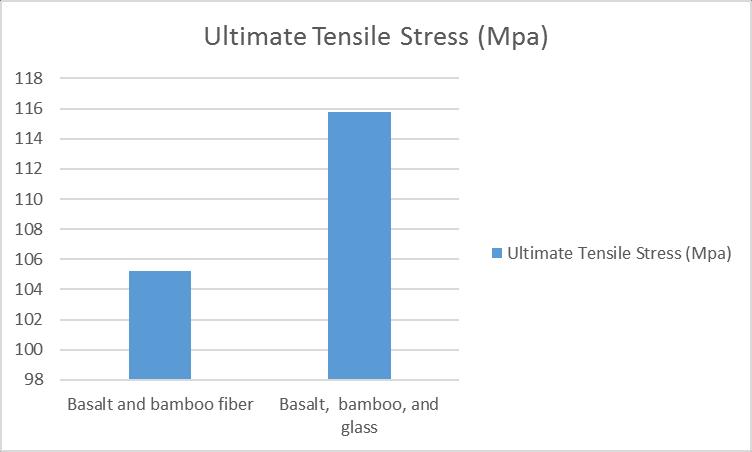Everysamplewasmadeaccordingtotheguidelines,andthe directionwaskeptsteadyat0ºduringthemakingprocess. For the initial mix (Basalt + bamboo), the highest load it couldhandlewas10.00KN,withamaximumtensilestressof 105.20MPaandaYoung’smodulusof4900MPa.Thenext sample (Basalt + bamboo + glass) saw the load raised to 12.00KN,withamaximumtensilestressof115MPaanda Young’smodulusof5150MPa.