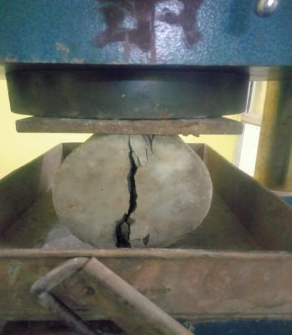 Split tensile strength: Usingcylinderswithadiameterof 150mmandaheightof300mm.Ittooksevenandtwentyeightdaystopourandtestthecylinder.Pistheload,Disthe cylinder's diameter, and L is the cylinder's length. The dividedtensilestrengthisequalto2P/πDL.