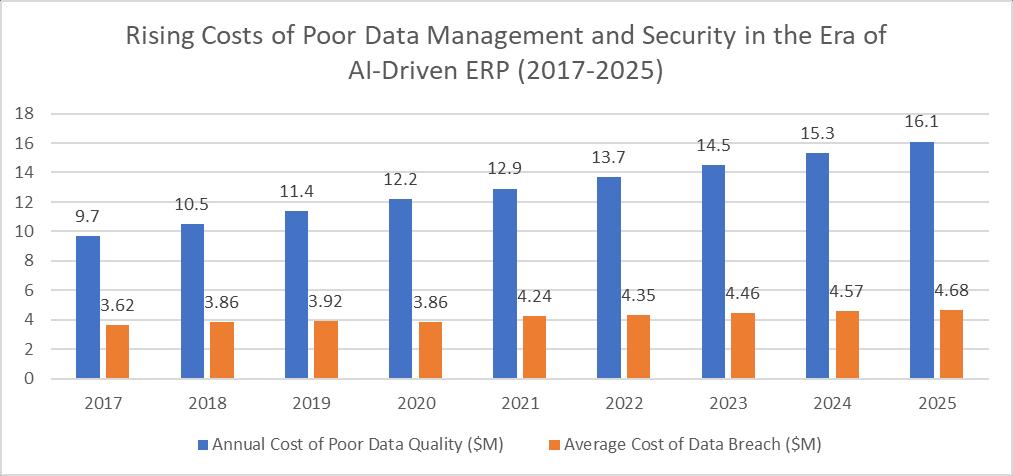 1. Data Quality and Governance: AI and ML models require high-quality, well-governed data to function effectively. Organizations must implement robust data governance frameworks to ensure data integrity and consistency across integrated systems. A study by Gartner found that poor data quality costs organizations an average of $12.9 million annually[17].InthecontextofERPintegrations,dataqualityissuescanleadtoerroneouspredictionsandineffective automation,potentiallynegatingthebenefitsofAIandMLimplementations.