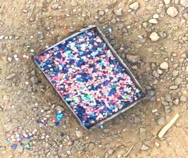 3. Procedure: Take an aluminum mould that is the appropriate size for the pothole as shown in Fig. 3. Place the HDPE pallets uniformly inside the aluminum mold, being careful todistributeitevenlyonaplatewithathicknessofaround 5mmasshowninFig.4.
