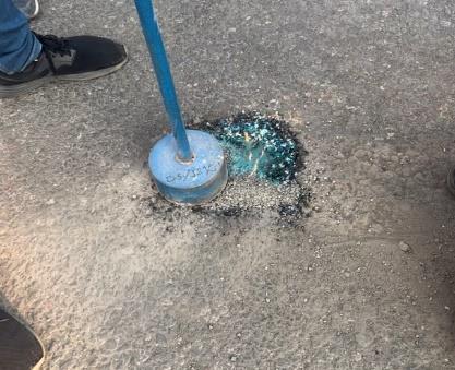 To remove large fragments of rock or soil, a blower orbroomisusedtoproperlycleanthepotholeasshownin Fig.7.Thentheproportionsofthepotholeareexamined.To create a solid base for the layer of HDPE plate, the pothole is filled with a layer of aggregates of uniform thickness, which is then compacted as shown in Fig. 8. Put the HDPE plateinthepotholesuchthatitcoversnearlyallofthemas showninFig.9.