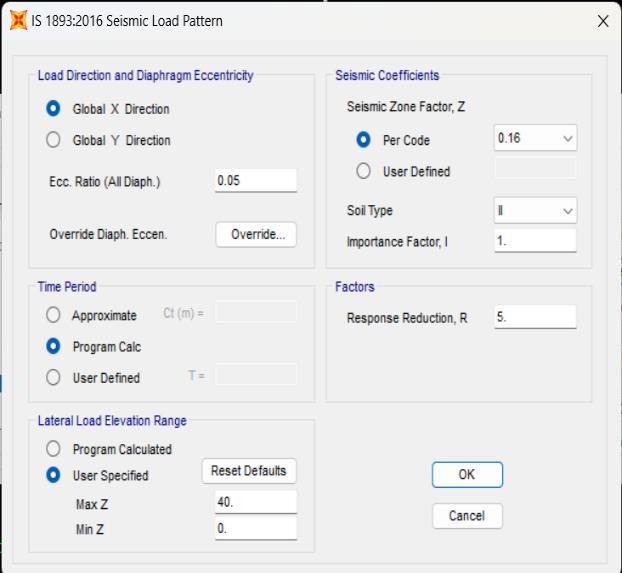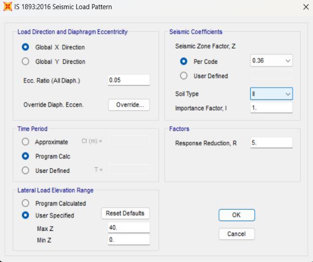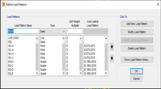 G.Earthquake Load Define Zone V H. Wind Load Define