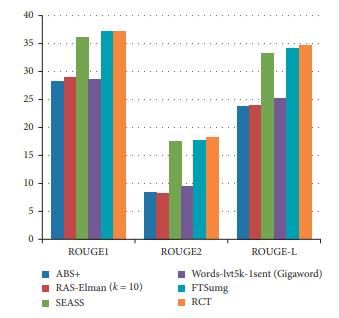 Fig.3ROUGE1,ROUGE2,andROUGE-Lscoresofseveraldeeplearningabstractivetextsummarisationmethodsforthe Gigaworddataset