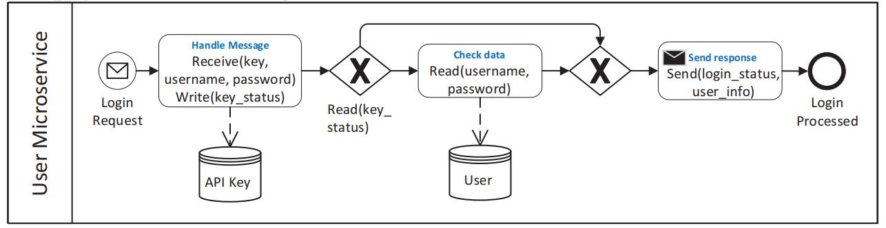 Using the microservice architecture [2], they are able to modelthedesignofamicroserviceasaworkflowthatis contained within a pool. This enables the microservices to communicate with one another via message passing. Figure 6 provides a visual representation of an example ofthemicroservicesparadigm.