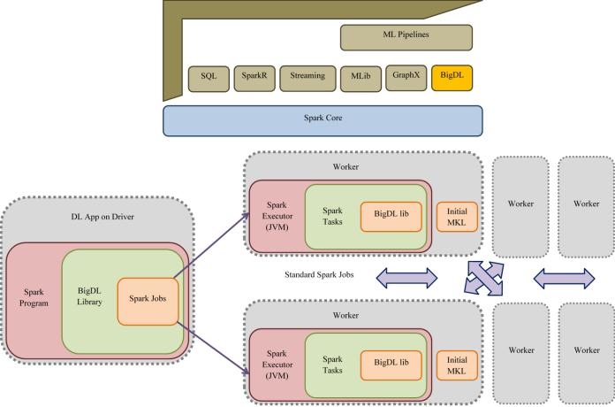 BigDL lib: BigDL isadistributeddeeplearning libraryfor Apache Spark; with Bid, users can write their deep learning applications as standard Spark programs, which can directly run on top of existing extensive data systems (e.g.Hardtop/Mesas).BasedonTensorFlowandApache Arrow, Bid is designed to remotely execute deep learning models at scale using familiar distributed big data frameworks such as Apache Spark. Bid is a distributed deep-learning framework on top of Apache Spark. Thisgivesthefirstpredictionsoverunlabeleddata.Next,a graph-basedsemi-supervisedlearningalgorithmisusedto spread the label information of labelled data iteratively points up to unlabeled ones depending on their (graph) edge strength. This process is iterated until all the data pointshavebeenpropagatedandeventuallyupdatedwith labels. The last predictions are now compared with the first prediction so we can make some corrections and improveourmodel.