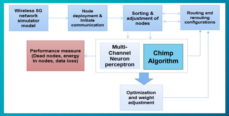 Creatingsystemarchitectureforasecure,energy-optimized modelforwirelessnetworkprocessesusingamultichannel neuralperceptroninvolvesintegratingvariouscomponents andlayerstoachieveseamlessoperation.Belowmentioned diagramisanoutlineoftheproposedarchitecture: