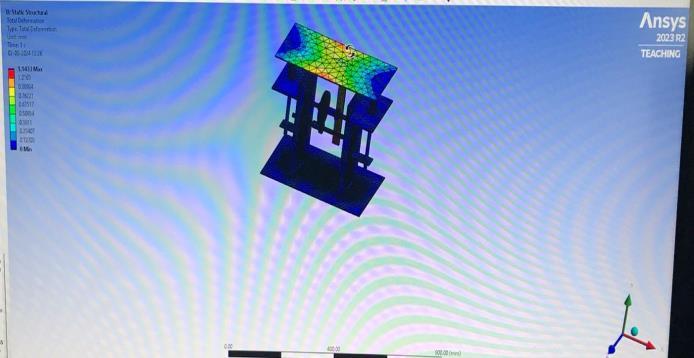 It is essential to know how much distortion is on the top platewhentheparticularburdenisapplied.Forthisreason, thestaticstructuralanalysisisactedintheAnsys,bytaking intoaccountthetypicalloadofapersonforexample60Kg