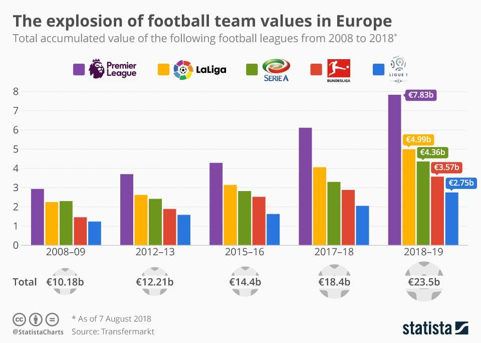 Figure1:RevenueearnedbyeachbigEuropeanleague Citation:https://www.statista.com/chart/15013/football-team-values-in-europe/