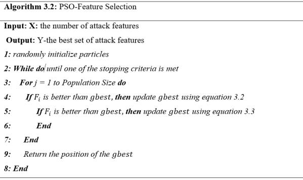 The algorithm for the PSO feature selection techniques is presentedinalgorithm3.2.
