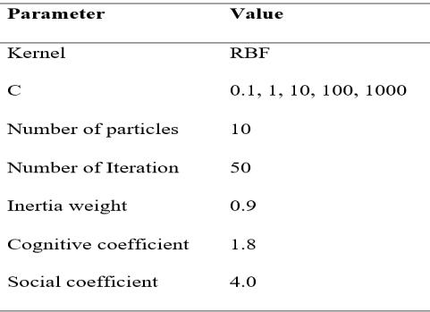 Table 4.1: ParameterSettingsforSVM-PSOmodel