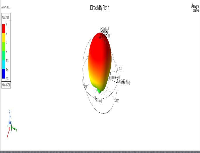 ReturnLoss(s11)Importance:Lowerreturnlossindicates better impedance matching, which means more power is transmitted while less is reflected. Typical values: A return loss of -10 dB or less (more negative) is usually considered satisfactory. Proposed return loss: This antenna's return loss was20.1860db.