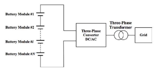A comprehensive battery storage system primarily comprises battery modules, power electronic converters, and a battery management system. A battery module is composedofnumerouscellsthatareinterconnectedeither inseries,inparallel,orinbothconfigurations,dependingon thedesiredoutputvoltageandcapacity.Figure1[3]displays the system configuration of a traditional Battery Energy StorageSystem(BESS).