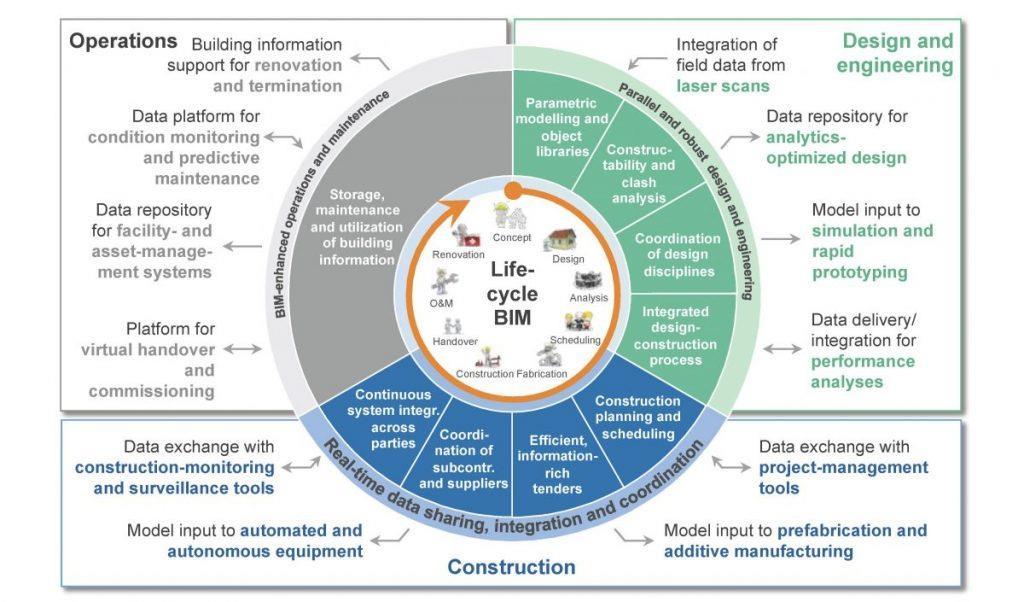 o Building Information Modelling (BIM) encompasses all phases of a building's existence, from designand construction to maintenance and use. This all-inclusive strategy lowers operating expenses and promotes effective facility management.