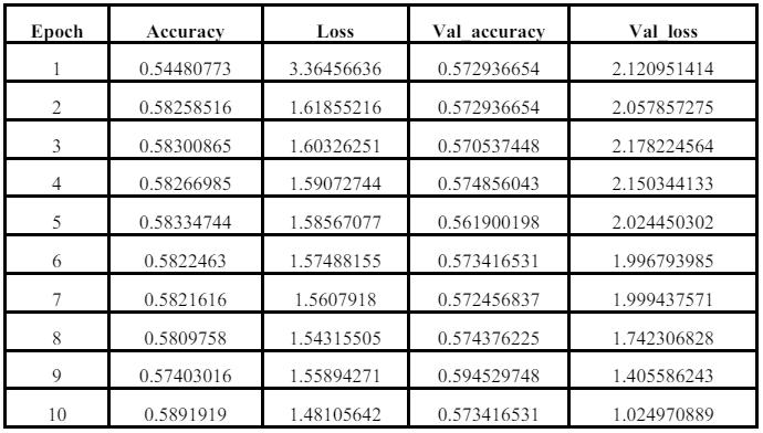 Table 1:Accuracyandlossvaluesforfirst10epochs