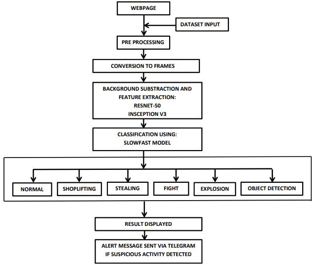 The objective of this project is to create a supervised ML modelfordetectingabnormalactivities,Classifythemand notify the respected higher authorities. Fig. 5 represents thecompletemethodologyofthemodel.